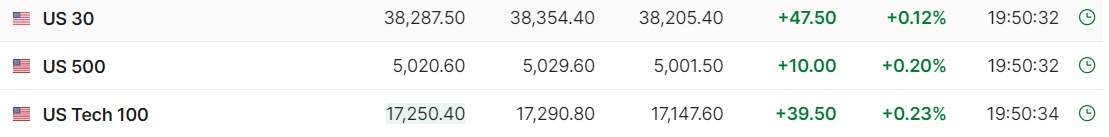 1. 4月23日(周二)美股盘前,美股三大股指期货齐涨。截至发稿,道指期货涨0.12%,标普500指数期货涨0.20%,纳指期货涨0.23%。
