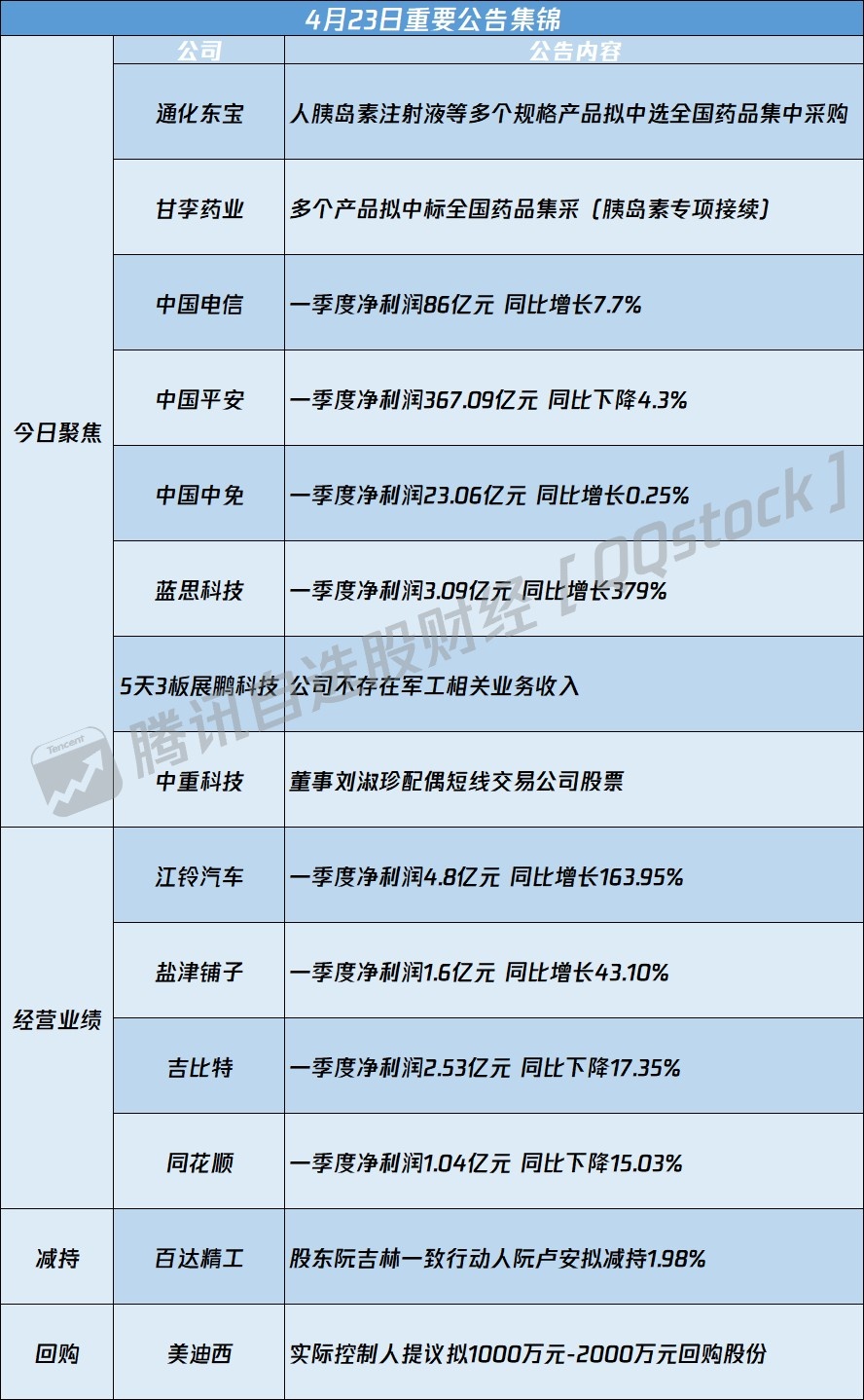 1、通化东宝:人胰岛素注射液等多个规格产品拟中选全国药品集中采购