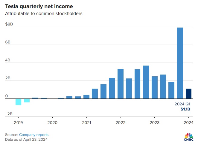 截至周二收盘,特斯拉股价今年迄今已暴跌逾40%,至2023年1月以来的最低水平,原因是人们担心其交付量疲弱、面临的竞争加剧以及正在进行的降价对毛利率的损害。特斯拉重申了对2024年的悲观展望,并表示“销售增长率可能明显低于2023年的增长率”。