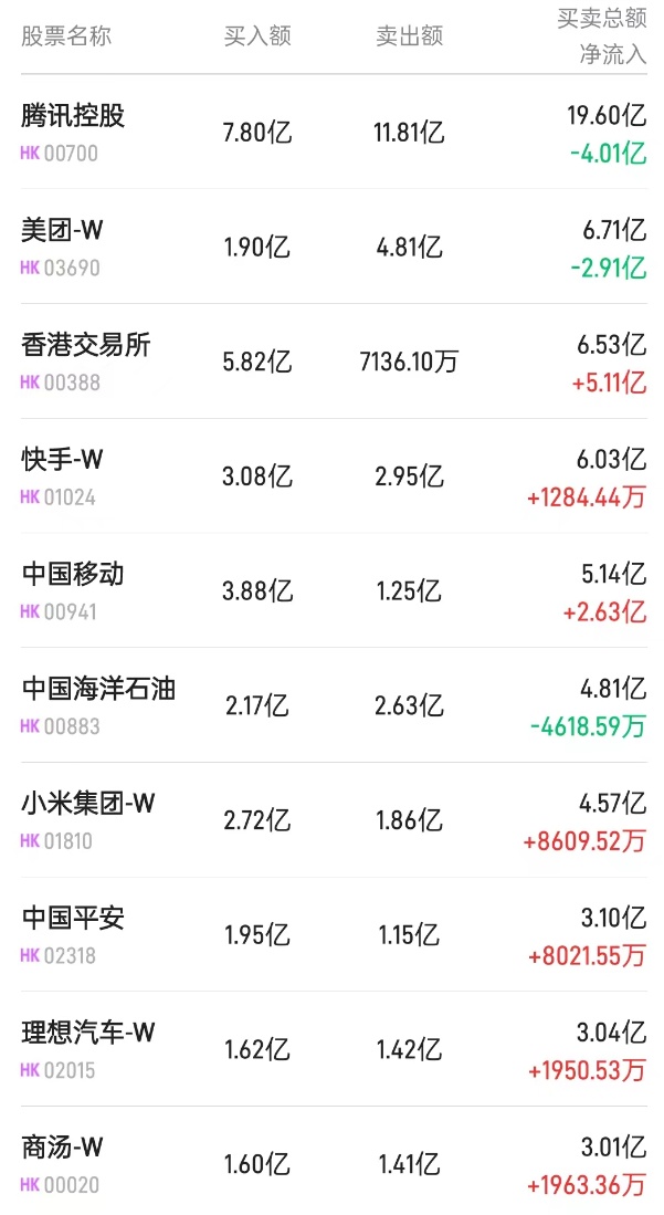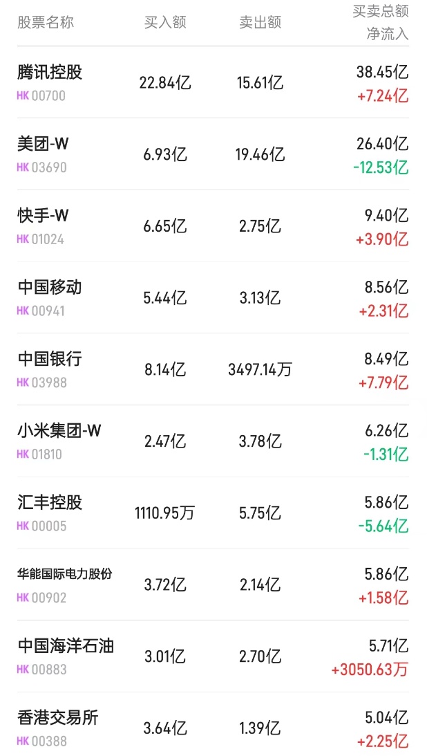 中国移动(00941)获净买入4.93亿港元。消息面上,中国移动公告,首季度营运收入2637亿元,同比增长5.2%。摩根大通发布研报称,公司首季业绩好坏参半,移动和固网服务收入略回升,但季内营运开支高昂,EBITDA同比跌2%。由于会计政策变更带动折旧与摊销节省,净利润维持稳定增长,营业现金流/自由现金流因应收账款激增而下降。该行维持中国移动增持”评级,并认为是行业首选,相信其股价具防守性,以及股息可见度为业内最好。