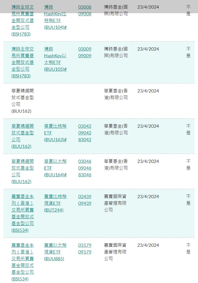 同日,华夏基金(香港)宣布,华夏比特币ETF 和华夏以太币ETF已获得香港证券及期货事务监察委员会(SFC)的批准,拟定于2024年4月29日发行,2024年4月30日在香港交易所上市。
