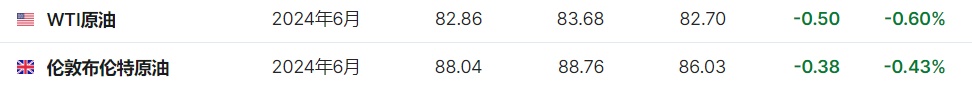 3. 截至发稿,WTI原油跌0.60%,报82.86美元/桶。布伦特原油跌0.43%,报88.04美元/桶。