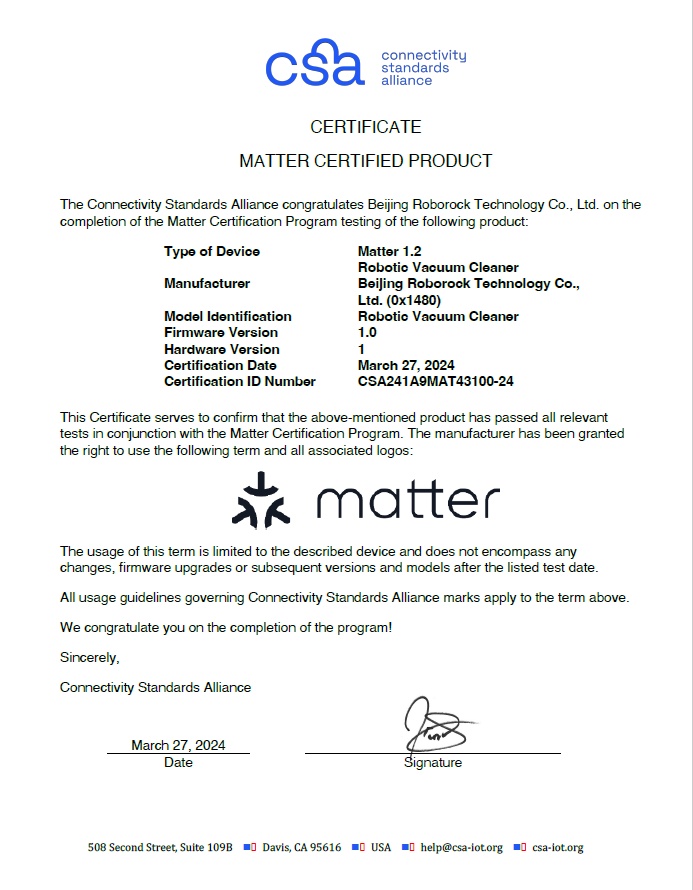 Solutions公布,石头科技(688169.SH)旗下的G20S扫地机器人成为全球首台获得Matter认证的扫地机器人。