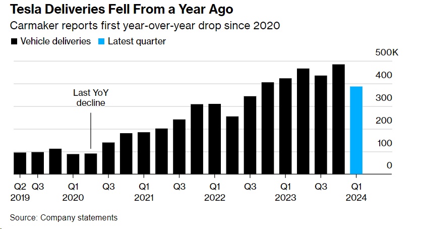 特斯拉第一季度的交付量实际上比去年同期下降了8.5%,不及预期。“全球电动汽车的采用率面临压力,许多其他汽车制造商正在退出电动汽车,转而追求插电式混合动力汽车。我们认为这不是正确的策略,电动汽车最终将主导市场,”马斯克在第一季度财报电话会议上表示。