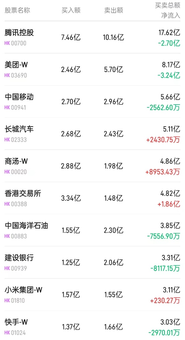 此外,小米集团-W(01810)获净买入230万港元。而中国移动(00941)遭净卖出8066万港元。