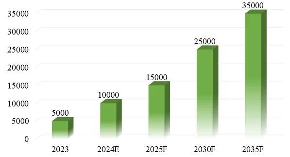 2023~2035年中国低空经济市场规模(单位:亿元)