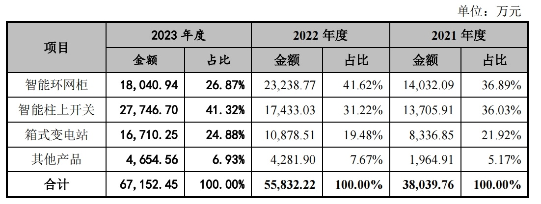 据招股书显示,昊创瑞通是一家专注于智能配电设备及配电网数字化解决方案的高新技术企业,主要从事智能配电设备的研发、生产和销售,主要产品包括智能环网柜、智能柱上开关和箱式变电站等。智能配电设备是开展配电网智能化升级和建设新型电力系统,提高电力系统灵活感知和高效运行,适应数字化、自动化、网络化电力系统发展要求,建设智能调度体系,实现源网荷储互动、多能协同互补及用能需求智能调控的关键设备,是实现配电网数字化转型的重要支撑。