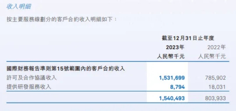 据智通财经APP了解,2023年科伦博泰总营收达到15.4亿元,同比大增91.6%,其主要收入来源便在于与默沙东合作开发的七项癌症治疗临床前ADC资产许可协议所带来的收入。在营收大增的带动下,科伦博泰当期毛利达到7.6亿元,同比增长44%;研发开支10.3亿元,同比增长21.9%。