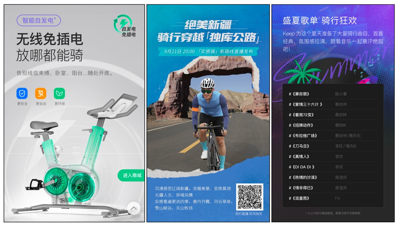 伴随着产品矩阵的不断丰富,Keep先后上线直播、17骑行日、实感骑系列专题和88天打卡返现等活动,不仅带动动感单车这一智能硬件从健身房里的专业器械快速成为普通大众家庭运动的首选,更启发了行业,通过深耕线上沉浸式课程,提升用户的运动体验。