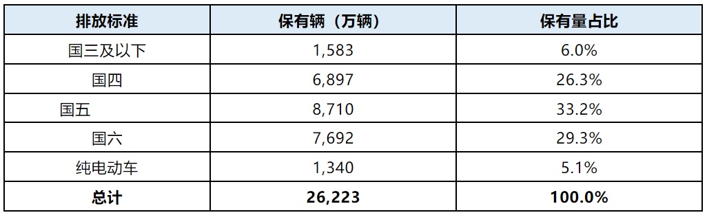 对于国三及以下排放的乘用车,都有超过13年的车龄时间,车辆状况差,排放污染严重。