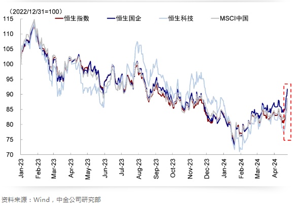 政策预期和事件性因素提供了一定催化。4月19日证监会发布《5项资本市场对港合作措施》(《解读5项资本市场对港合作措施》)、财政部提出支持央行逐步增加国债买卖利好流动性等,均使投资者对之后其他关键措施的推进产生积极预期。此外,包括港股红利税和一线城市地产政策等方面的优化也备受关注。建议投资者密切关注年中政治局会议相关进展。