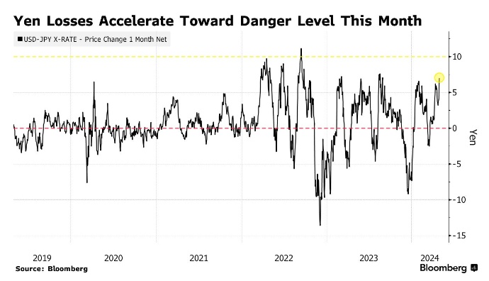 政策制定者一再警告称,如果贬值幅度过大过快,日本将不会容忍。日本财务大臣铃木俊一在日本央行会议后也重申,政府将对汇率波动做出适当反应。本月早些时候,他还向美国财政部长耶伦表达了对日元贬值的担忧,市场参与者认为这为干预汇市奠定了基础。