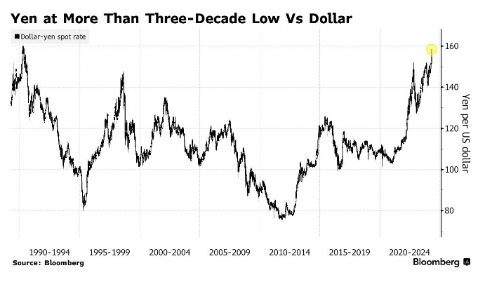 不过,高盛策略师补充称,如果日元继续像上周五那样表现逊于其他资产,干预的风险将大幅上升。据悉,当天日元汇率下跌1.7%,至1美元兑158.30日元左右,为六个月来最大跌幅。