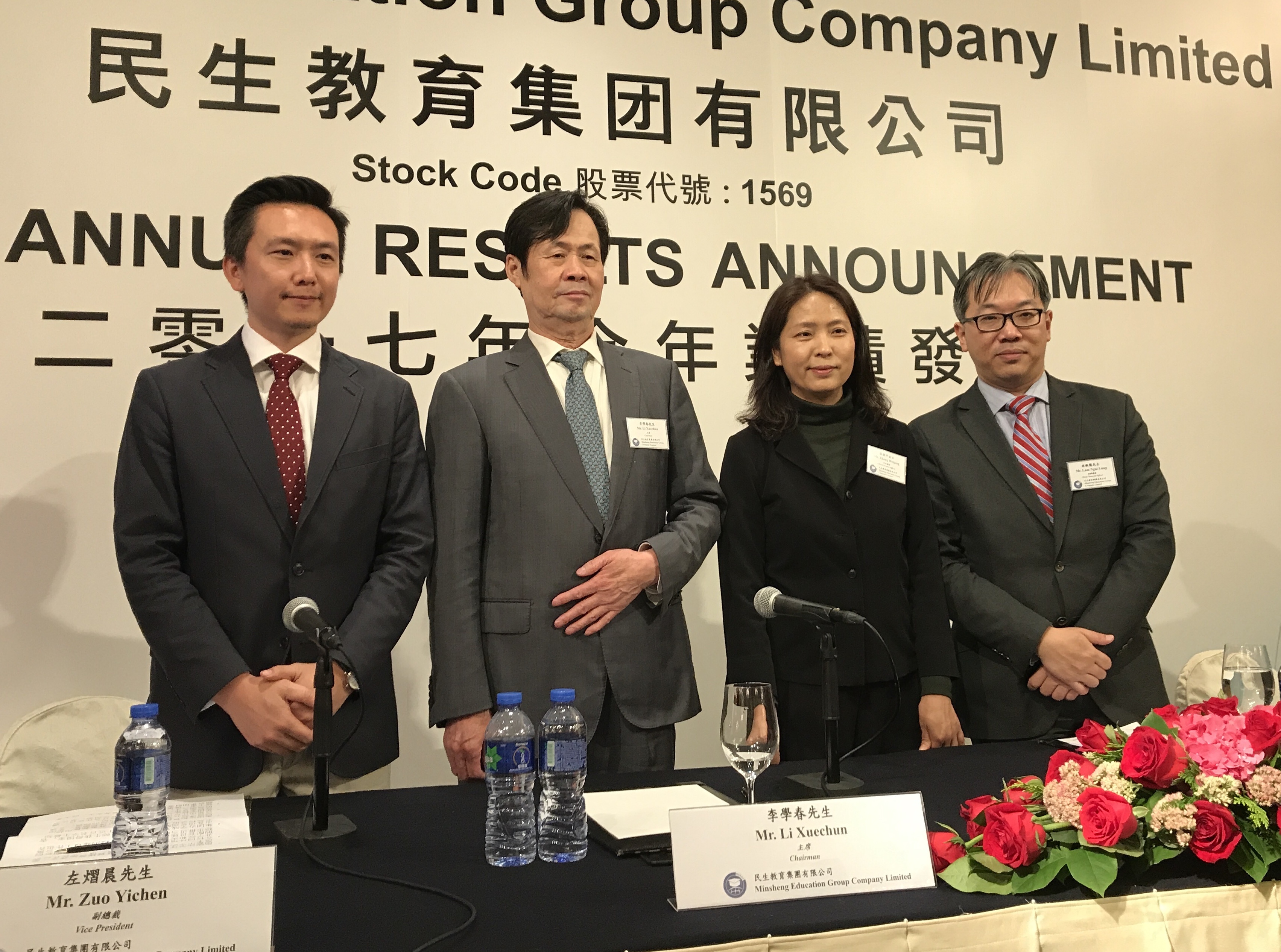 3月13日,民生教育集团(01569)在香港举办了2017年度业绩发布会,集团主席李学春表示,2018年将考虑并购更多项目,包括大学、高中、职业教育项目。