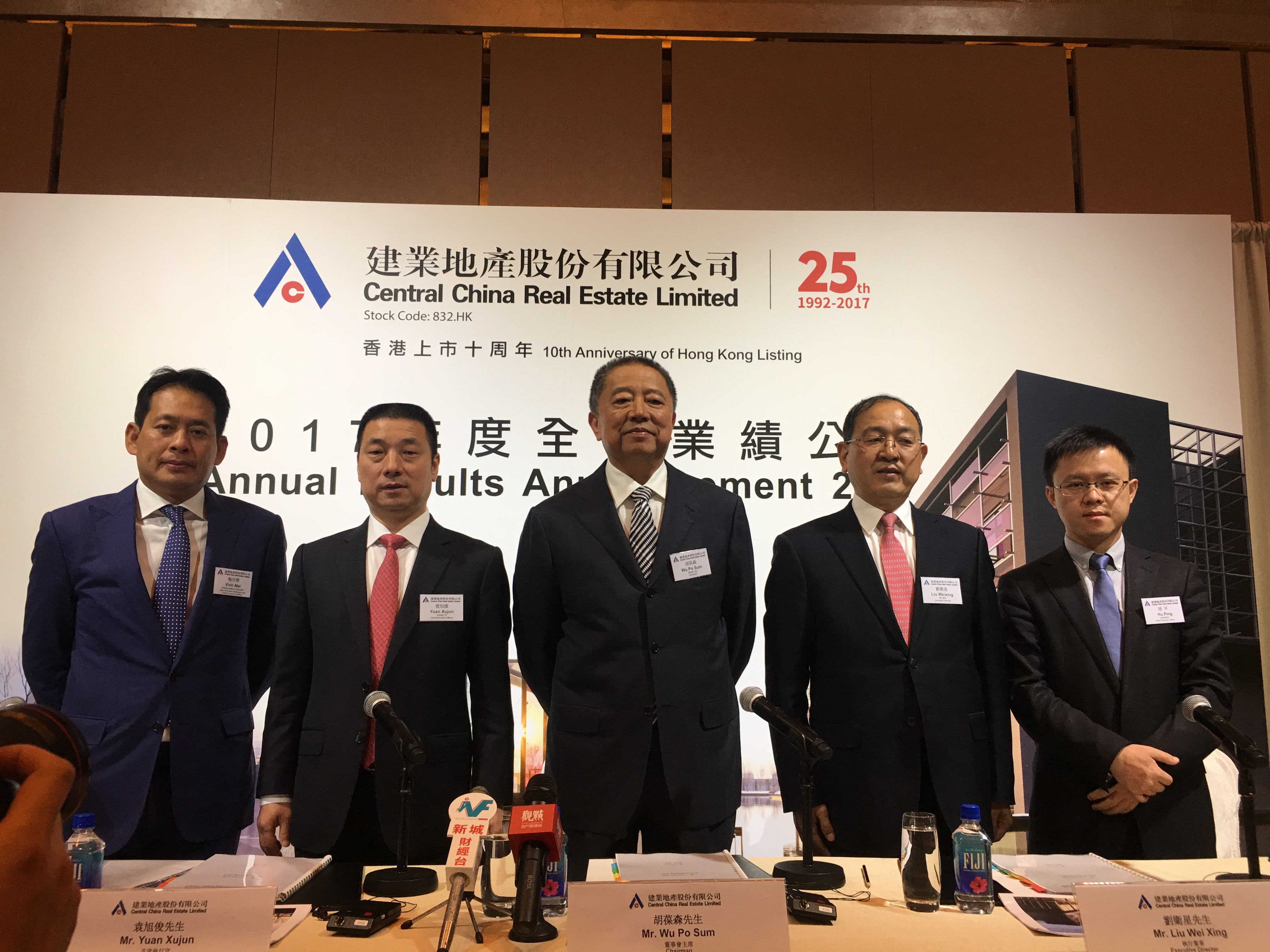 袁旭俊(建业地产首席执行官):这10年来建业地产销售额的复合增长率在24%左右,这个复合增长率是非常健康和稳定的。经过我们上市10年以来的这么一个基础,经过2015年的战略转型,到2017年开始我们有了小小的提速。2017年公司的合同销售金额为304.15亿元人民币,同比增加51%,也是到了水到渠成的增长时机。未来两到三年会保持50%的增长速度,具体销售结果需根据市场情况来把握。