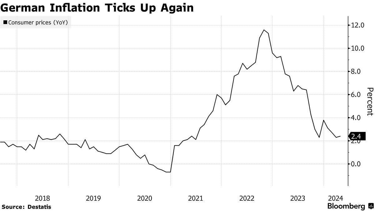 智通财经APP获悉,德国通胀自去年12月以来首次加速,突显出欧洲央行所警告和担忧的情况,即通胀重返2%目标的道路将充满坎坷。周一公布的数据显示,德国4月调和CPI同比上涨2.4%,高于前值2.3%和市场预期的2.2%,能源是德国4月通胀重新加速的关键因素。