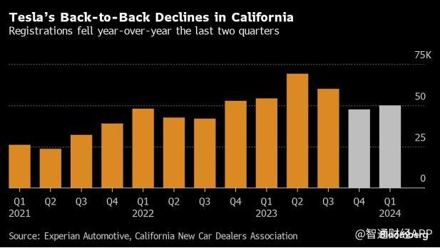 智通财经APP获悉,美国加州新车经销商协会的最新报告指出,特斯拉(TSLA.US)在加州的汽车销量连续第二个季度出现下滑,这可能意味着该公司在该州的市场接受程度已接近顶峰。该行业组织在周一的声明中提到,尽管特斯拉在加州依然销量领先,但其今年第一季度的新车注册量同比下降了7.8%。而去年第四季度,特斯拉的注册量已经下降了9.8%。