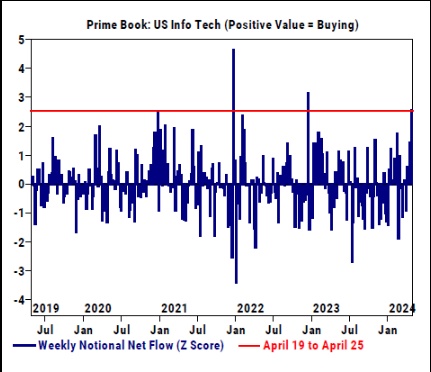 智通财经APP获悉,对冲基金继续保持上周对科技股的风险偏好,以一年多以来最快的速度购入该行业公司。根据高盛集团大宗经纪业务汇编的数据,科技股上周创自2022年12月以来最大的净买盘,这一趋势主要由多头头寸和空头回补推动。