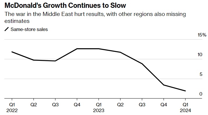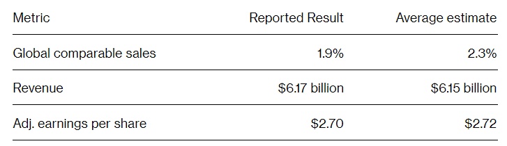 同店销售额(一项追踪开业一年以上餐厅的指标)增长1.9%,低于分析师预期的2.3%。按这一指标衡量,麦当劳所有地区的销售额都低于预期,包括在关键的美国市场略有下降、中东在内的业务部门出现了下滑。
