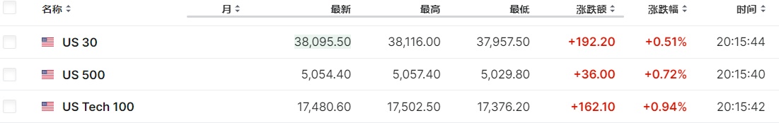 1.5月2日(周四)美股盘前,美股三大股指期货齐涨。截至发稿,道指期货涨0.51%,标普500指数期货涨0.72%,纳指期货涨0.94%。