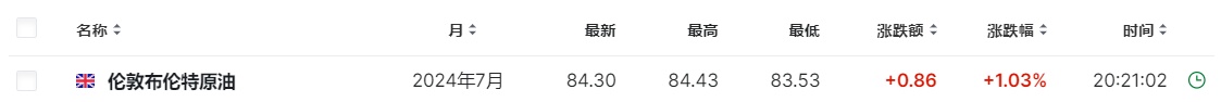 3. 截至发稿,WTI原油6月期货涨0.92%,报79.73美元/桶。布伦特原油涨1.03%,报84.30美元/桶。