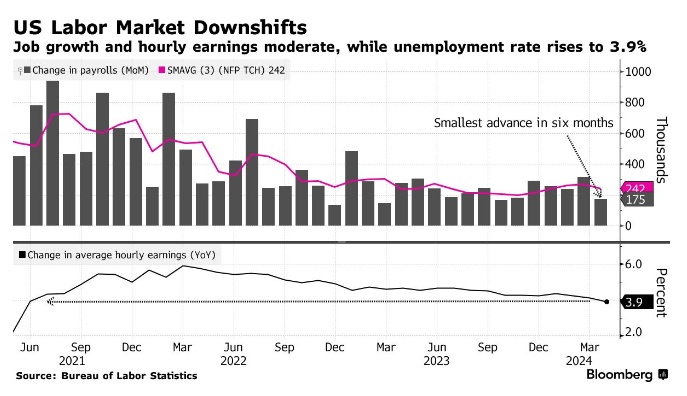 平均时薪环比增长0.2%,同比增长3.9%,这是2021年6月以来的最低增速,并且两项数据均低于预期。一些经济学家曾预计,由于加州4月1日生效的一项新法律规定快餐业工人的最低工资为20美元,这一增长可能会更为强劲。