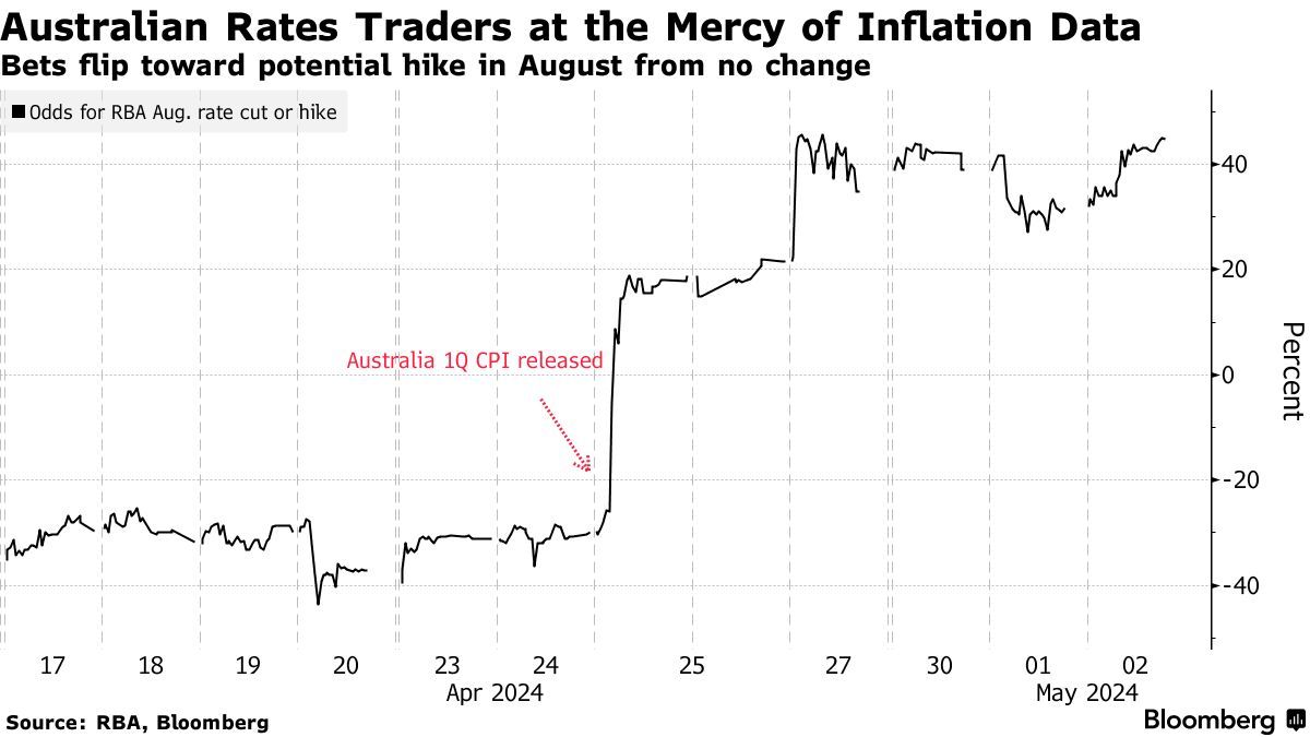 在澳洲联储公布利率决议的上一周,美联储主席鲍威尔保留了今年降息的希望,同时承认顽固的通胀削弱了人们对价格压力正在消退的信心。澳洲联储看起来可能会面临类似的道路。