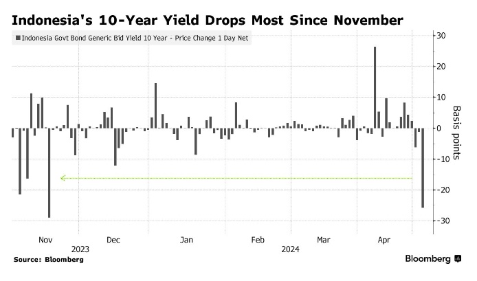 周一,印尼10年期国债收益率一度下跌26个基点,至6.91%,帮助收窄了4月份55个基点的升幅。上周五,在美国就业数据弱于预期后,美国国债价格出现反弹。