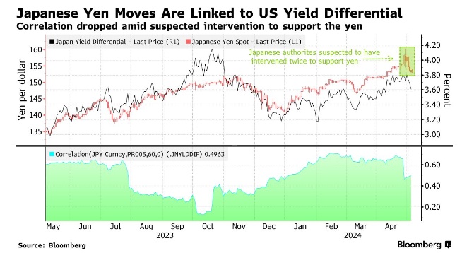 根据计算,为了遏制日元的损失,日本财务省可能在4月底和5月初两次买入日元,总共花费了约9万亿日元(589亿美元)。日元仍是今年迄今为止表现最差的主要货币,兑美元跌幅超过8%。