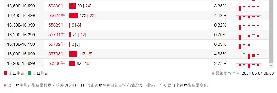 智通财经APP获悉,截至5月7日,恒指最新的牛熊街货比例为39:61。