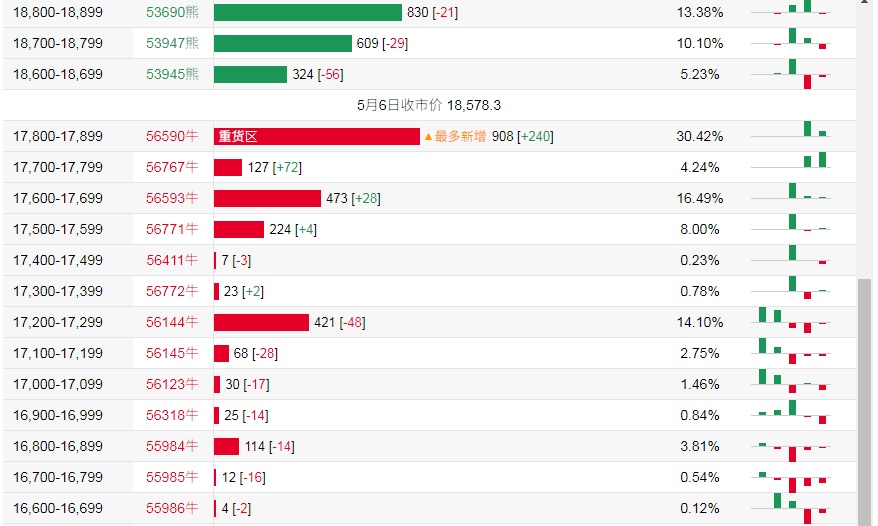 牛证街货重货区和最多新增均在17800-17899区间,该区间最新熊证数量为908张,较上一交易日增加240张。