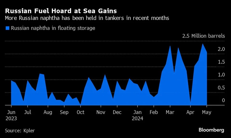 智通财经获悉,随着韩国买家变得谨慎,来自俄罗斯的一种石油产品的海上货物正在增加,这突显出在乌克兰战争爆发两年多后,俄罗斯仍在影响石油供应。据市场情报公司Kpler的数据,截至5月5日,超过200万桶俄罗斯石脑油(一种制造塑料的原料)已在油轮中储存了一个多星期,其中一些在阿曼附近的水域。这比1月和2月的每周平均79万桶有所增加。
