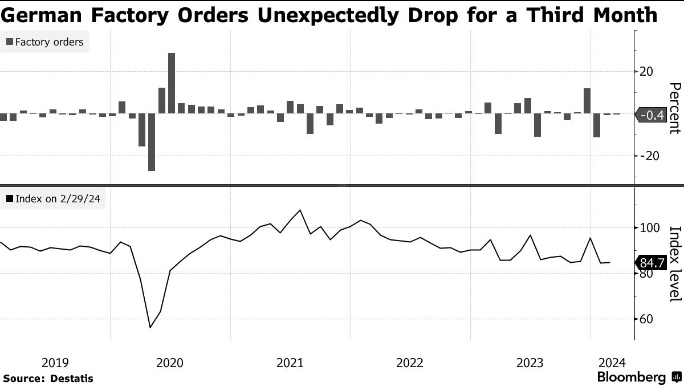 智通财经APP获悉,德国制造业在3月份工厂订单数据遭遇了意外下降,这一现象反映出该行业相对于整体经济复苏的滞后性。根据统计局的最新数据,德国3月订单需求环比下降了0.4%,这一结果与经济学家预期的0.4%的增长相去甚远。德国统计局在周二的声明中指出,若非主要订单的减少,该国经济增长本可以达到0.1%。此外,该国2月份的数据也从先前的评估中下调,显示下降0.8%。