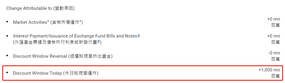 智通财经APP获悉,5月7日,香港金管局通过贴现窗口向银行借出10亿港元。目前贴现窗基本利率为5.75%。年初至今,香港金管局分别于1月3日、1月9日、1月29日、3月18日、3月21日、3月26日、4月22日、4月23日运作贴现窗,涉及资金分别为17亿港元、10亿港元、21.14亿港元、1.38亿港元、2000万港元、9亿港元、5亿港元、5.25亿港元。