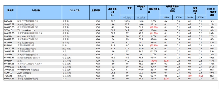 同时,摩根士丹利发布了“中国走向全球”投资主题股份名单,包括美的、联想集团、阿里、海尔等20只股票。大摩认为,中国目前政策重点放在去杠杆化上,因此需要采取更积极的反周期措施来刺激需求鉴于出口导向型方法面临贸易紧张局势的风险,需要向家庭消费再平衡。