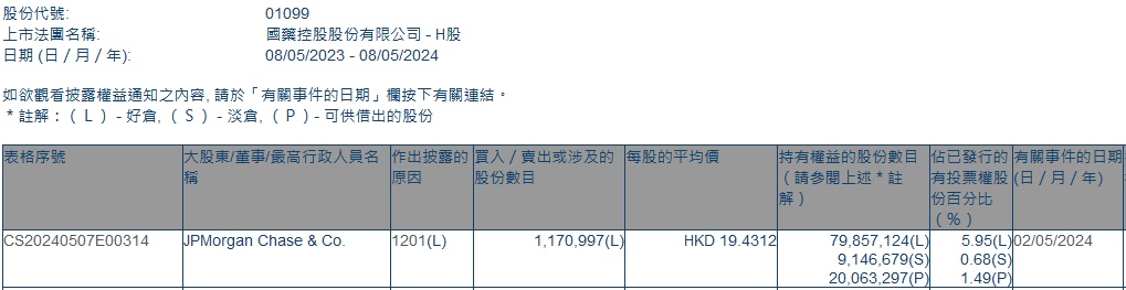 智通财经APP获悉,香港联交所最新资料显示,5月2日,小摩减持国药控股(01099)117.0997万股,每股作价19.4312港元,总金额约为2275.39万港元。减持后最新持股数目约为7985.71万股,最新持股比例为5.95%。