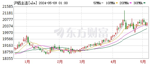 智通财经APP获悉,2024年一季度,铝价止跌反弹,呈现出“V”型反转,季度内价格运行区间在18650-19540元/吨,均价较2023年四季度上涨。据卓创资讯数据显示,进入二季度,国内现货铝价格一度涨至20750元/吨,刷新近一年多以来的新高,期货沪铝主力合约最高攀升至21345元/吨。