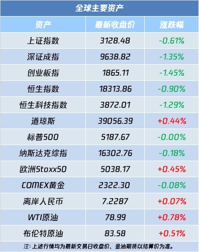 自选哥提示,隔夜美股三大股指收盘涨跌不一,道指连续六个交易日上涨;COMEX 6月黄金期货收跌0.08%,报2322.3美元/盎司,连跌两日;WTI 6月原油期货收涨0.61美元,涨幅0.78%,报78.99美元/桶。