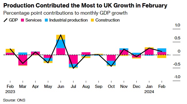 在2024年开局经济增长强于预期之后,英国央行也可能上调其增长预期。政策制定者们曾预计英国第一季度GDP环比增速仅为0.1%,但经济学家认为,周五公布的数据将显示英国第一季度GDP环比增速为0.4%。此外,有商业调查显示,经济增长的势头延续到了第二季度。