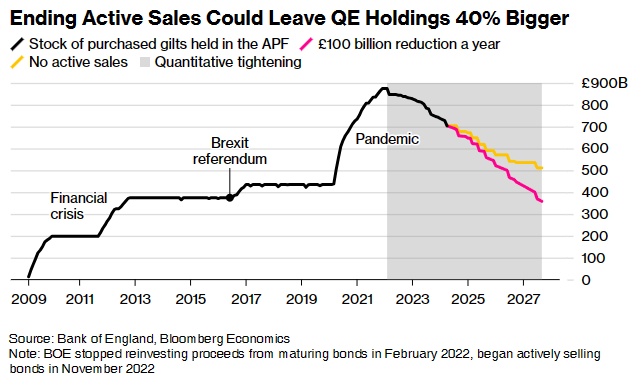 经济学家认为,随着英国央行开始降息,它可能会在今年晚些时候结束积极出售,德意志银行首席英国经济学家Sanjay Raja警告称:“活跃的量化紧缩可能会加剧金融环境的收紧,这与英国央行的关键货币政策杠杆背道而驰。”