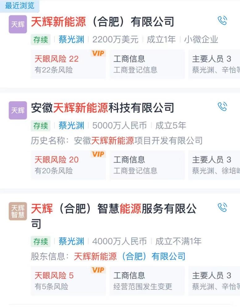 公开资料显示,天辉新能源科技有限公司是知名新能源企业华能集团的供应商,已中标包括华能安徽分公司蚌埠80兆瓦户用光伏项目、华能浙江能源销售公司2024-2025年金华和衢州区域40MW户用分布式光伏发电项目EPC总承包及5年运行维护等在内的4个项目,中标项目总金额达10亿元。