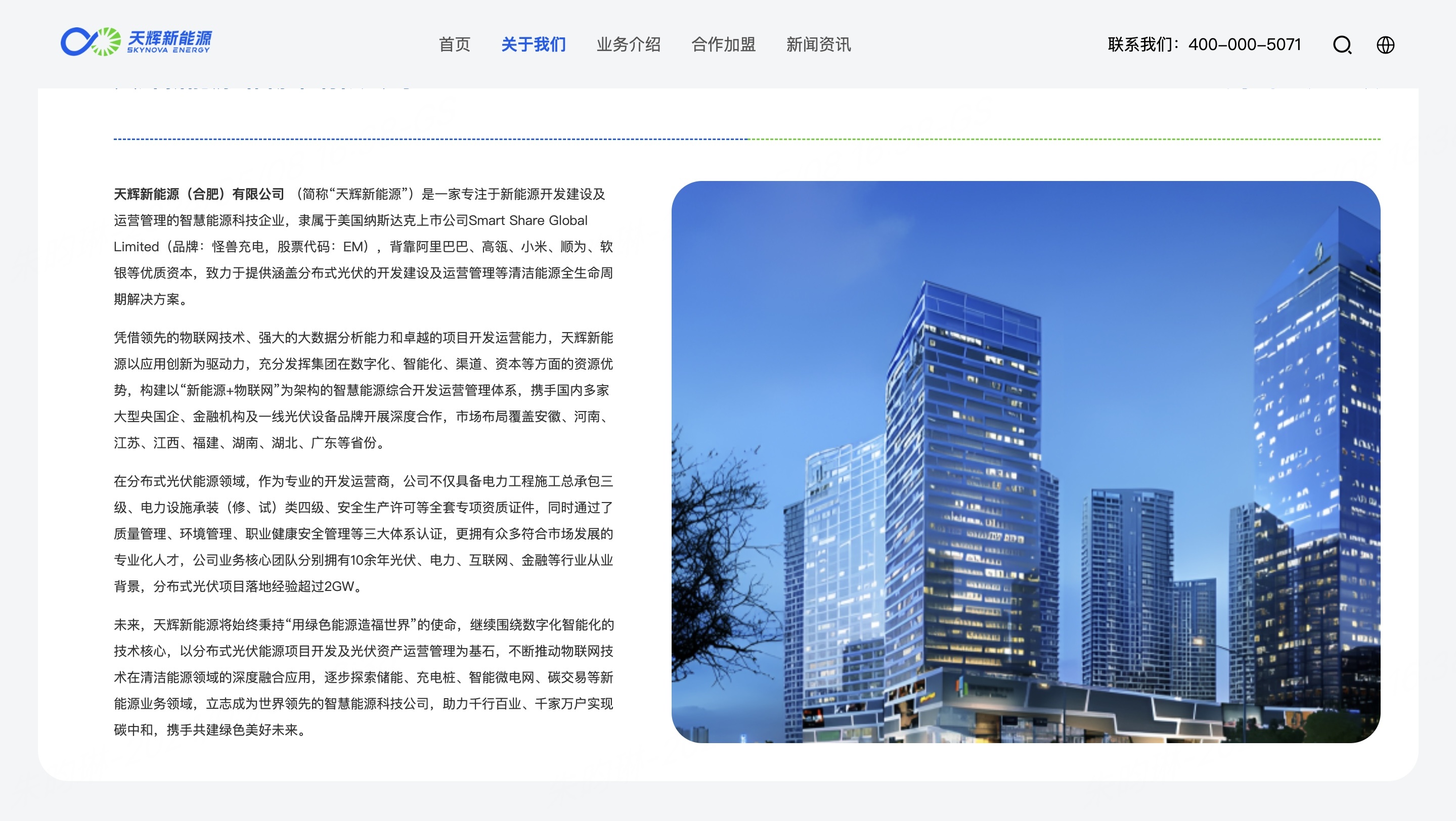 据天辉新能源官网介绍,公司已携手国内多家大型央国企、金融机构及一线光伏设备品牌开展深度合作,市场布局覆盖安徽、河南、江苏、江西、福建、湖南、湖北、广东等省份;后续还计划逐步探索储能、充电桩、智能微电网、碳交易等新能源业务领域。