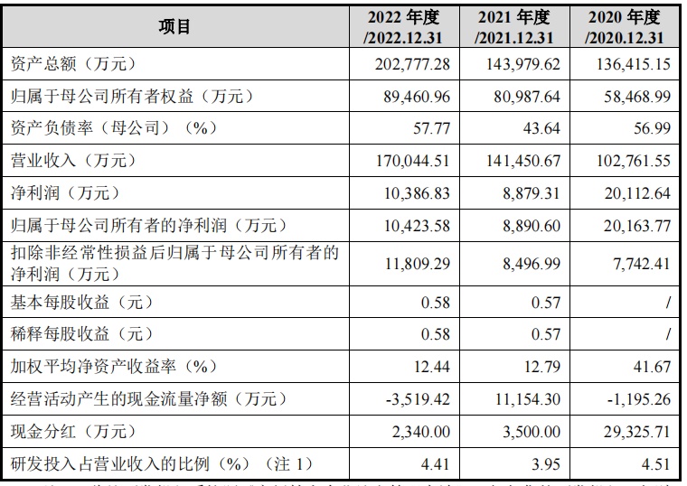 财务方面,2020年度、2021年度及2022年度,英特派分别实现营业收入约10.28亿、14.15亿及17亿人民币;净利润分别约为2.01亿、8879.31万、1.04亿人民币。