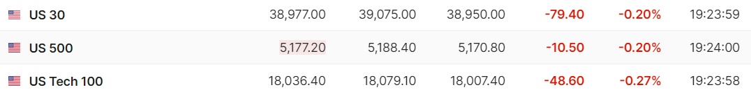 1. 5月9日(周四)美股盘前,美股三大股指期货齐跌。截至发稿,道指期货跌0.20%,标普500指数期货跌0.20%,纳指期货跌0.27%。