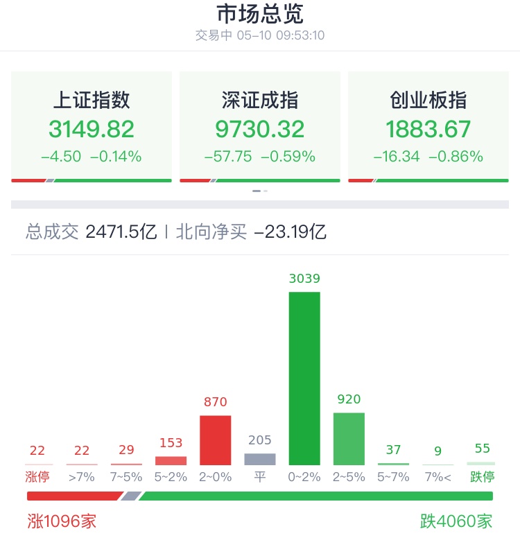 5月10日,A股早盘震荡分化,沪指迈入技术性牛市,最高点较2月5日低点(2635.09点)反弹超20%。盘面上,合成生物概念股强势,热度扩散人造肉分支炒作,地产股再度走强,贵金属、油气等资源股反弹,旅游、养殖等板块涨幅居前;下跌方面,固态电池等新能源赛道回调,ST、脑机接口等板块跌幅居前。