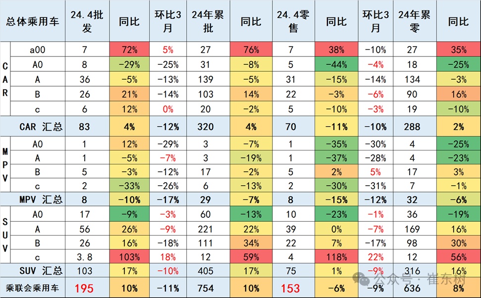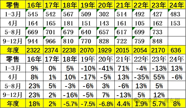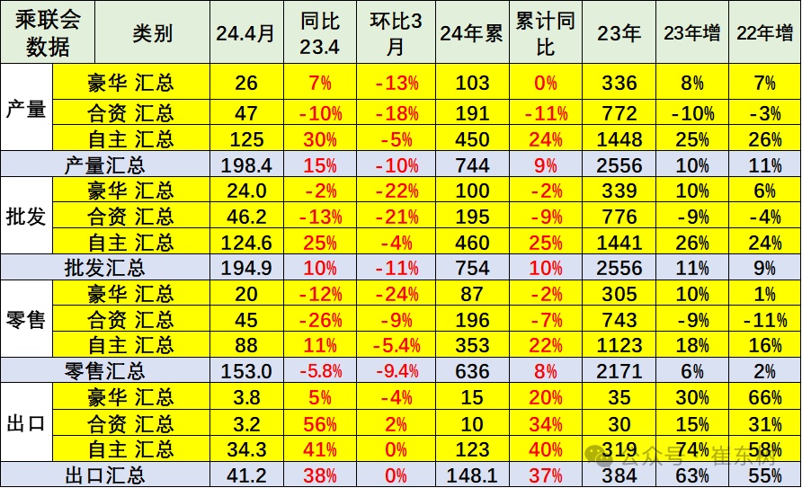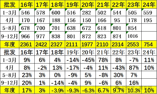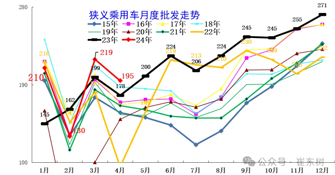 2023年以来累计批发创历史新高达2,553万辆,今年1-3月增11%,4月批发达到195万辆,累计同比增长10%,总体走势相对较强。