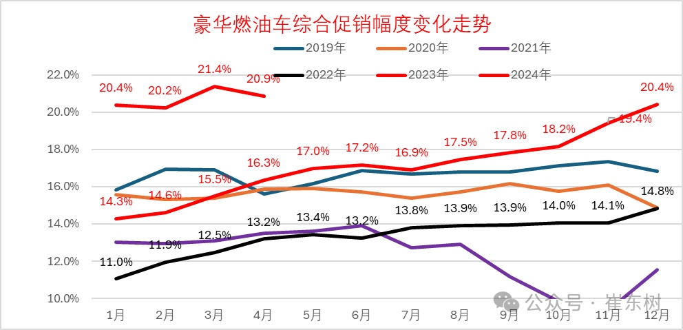 虽然消费升级推动高端需求较强,但由于新能源的分流,豪华车促销力度持续增大到20.9%,处于历史次高位水平。