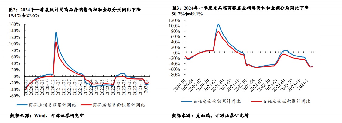据统计局数据显示,2024年一季度全国商品房销售面积2.27亿平,同比下降19.4%(1-2