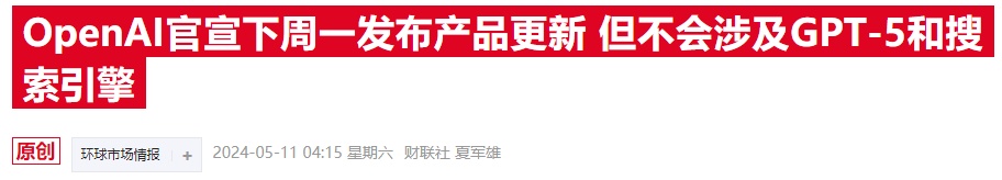 昨日,OpenAI表示将于下周一以直播的形式发布产品更新。奥尔特曼在社交媒体上写道,“不是GPT-5,也不是搜索引擎,但我们一直在努力开发一些我们认为人们会喜欢的新东西!对我来说感觉就像魔术一样神奇。”