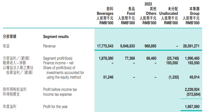 进一步来看,2023年统一的食品和饮料分部分别实现收入98.5亿元、177.8亿元,前者同比减少了10.6%,而后者则上升了8.4%。可见,眼下统一的基本面各业务间也已经出现了分化,食品业务收入明显承压。